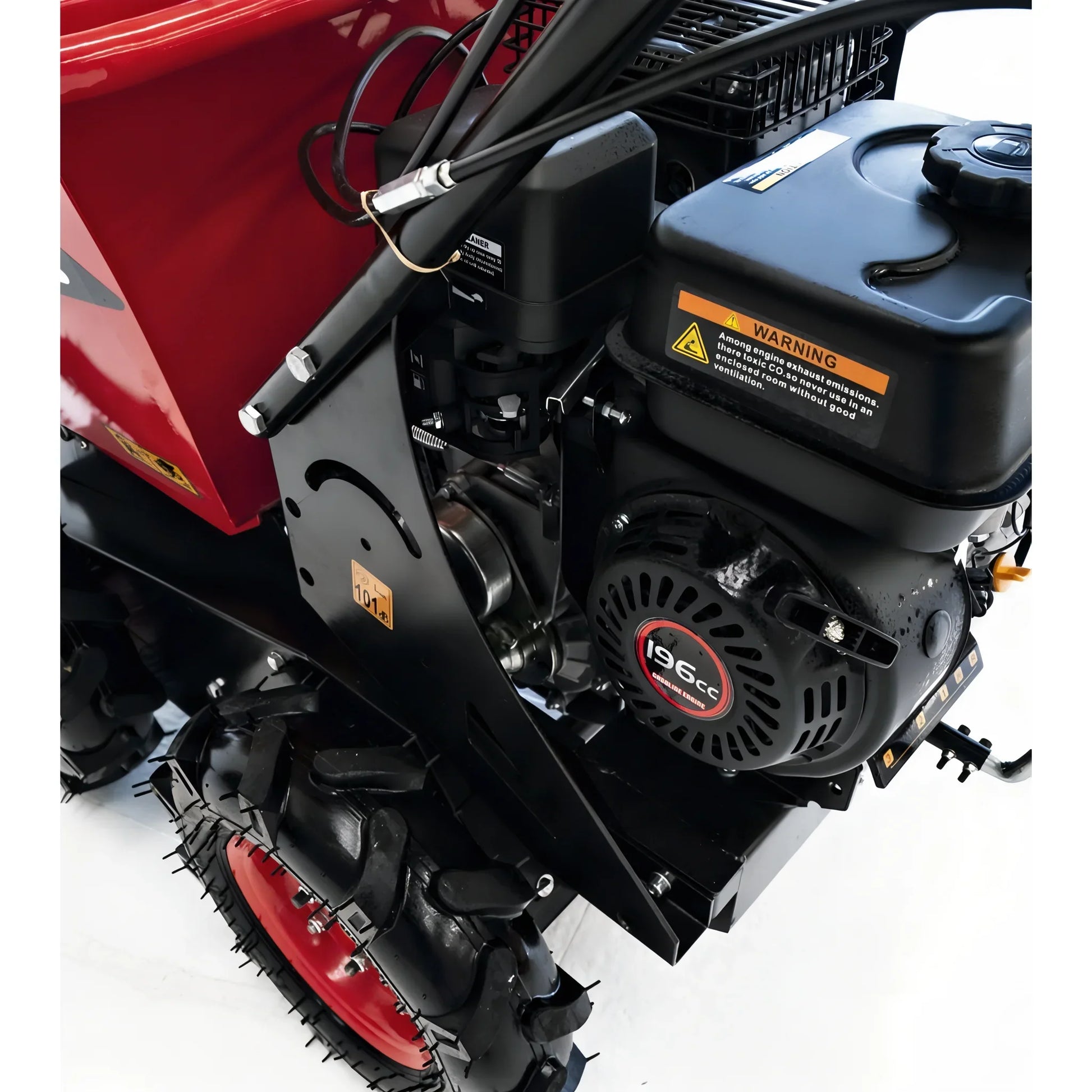 La Supercarry está pensada para quien necesita mover peso sin complicarse. El motor Loncin de 196 cc mueve la tracción 4x4 con solvencia, y el conjunto se nota robusto para terrenos irregulares. La tolva tipo dumper es simple, resistente y permite cargar y descargar con buena seguridad y control.
