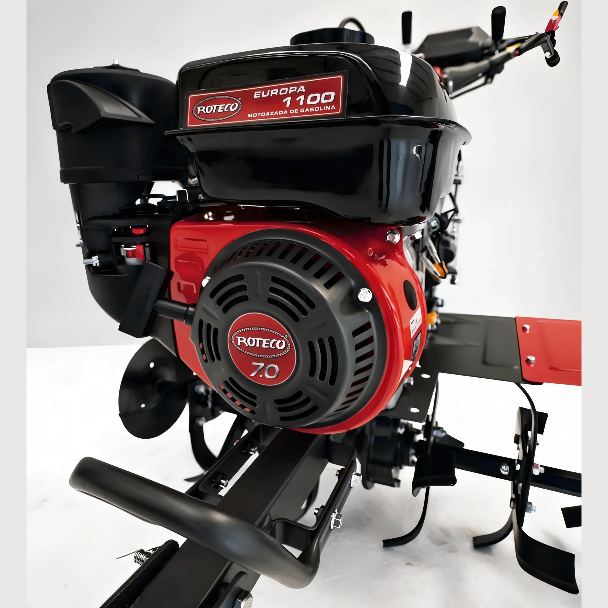 Descubre la motoazada Roteco Europa 1100 Diésel, tu compañera ideal en la preparación del terreno para jardinería y agricultura. Con su potente motor 4T de 7.0 HP y arranque eléctrico, facilita trabajar la tierra con comodidad. Equipada para la versatilidad, esta herramienta de gama semi-profesional se adapta a tus necesidades con accesorios intercambiables y ofrece robustez y precisión en cada uso.